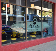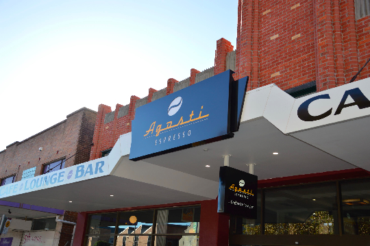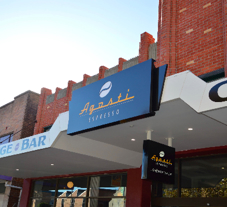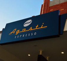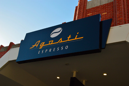 Bright and colourful building signage accompanied with window etched frosted lettering, logo and graphics.
