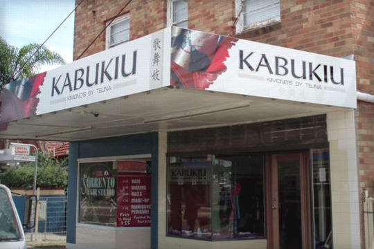 It was quite obvious when surveying the new Kabukiu store that the awning over looking the Pacific Highway was the best way to let people know that Kabukiu was on the scene and where to get their hands onto one of Telina's spectacular kimono's. Telina & MG Signs both worked together on the design and the signage was made using alupanel with digitally printed graphics and a long life clearcoat that will keep Kabukiu's awning looking sharp for years to come.